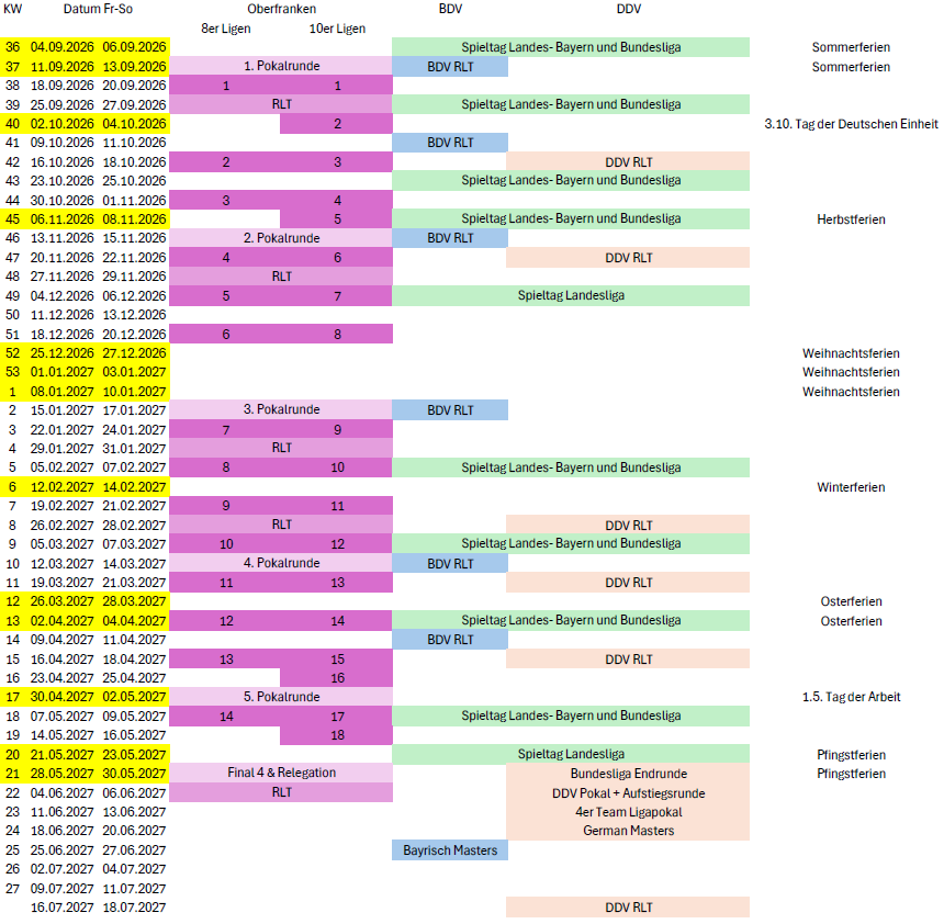 Rahmenspielplan Saison 2026/2027